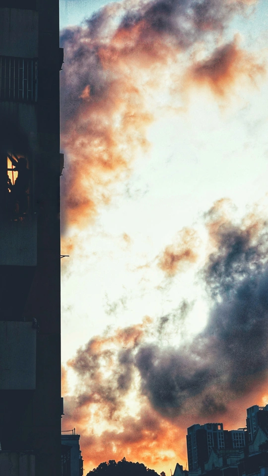 火烧云的黄昏,一家人在装空调还是防盗窗?