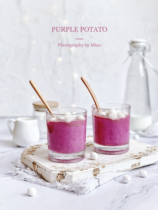 🌟🌟🌟材料如下: 紫薯 3个,香蕉🍌 1根,酸奶 200克,小圆子 适量 🌟🌟🌟步骤如下: 1⃣️ 紫薯去皮切块蒸熟,香蕉切块 2⃣️ 蒸熟的紫薯放入料理机 3⃣️ 放入香蕉块 4⃣️ 倒入酸奶 5⃣️ 按下开关键搅拌成细腻的奶昔 6⃣️ 锅内烧开水,水开下小圆子,小圆子漂起来后捞出备用 7⃣️ 锅内烧开水,水开下小圆子,小圆子漂起来后捞出备用