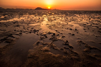 拍摄于上海洋山港,这张作品是我和朋友去露营的时候拍的。当时看到这里的沼泽地很有造型,加上美丽的落日,于是自己就拿起相机拍了下来。