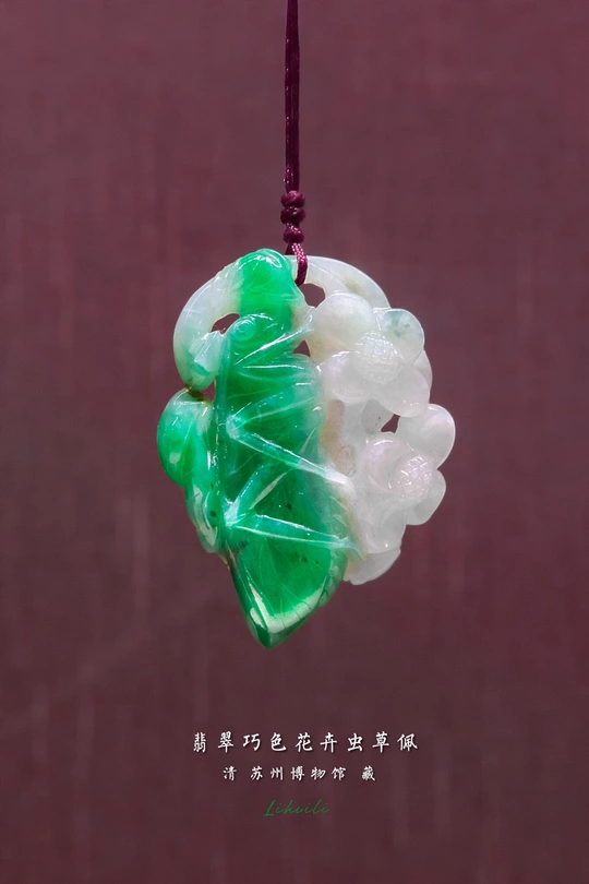 翡翠巧色花鸟虫玉佩,清,苏州博物馆藏。
