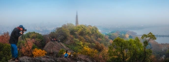 这个景点叫宝石山——蛤蟆峰,古人以“一峰之志”言其高峻。此峰不仅高峻,形态也奇,从不同的角度观望,此峰有各种不同的形态。从断桥白堤望去,形如古人巾帻,称巾帻峰,林逋“巾子峰头乌柏木,微霜未落叶先红”的诗句,说的便是此景。在这里,不仅可以饱览保俶塔的雄姿,远眺西湖,俯瞰白堤,湖光山色,更是魅力无限。