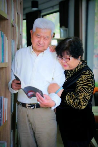在书店购书时偶见书架前一对老年夫妇阅读选购,被他们的专注所感动,随急记录下这美好的瞬间。