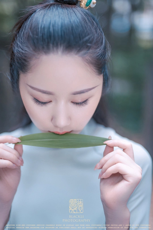 着淡淡青衣 露淡淡脸庞 行动处若柳扶风 嫣然一笑似海棠 出镜:米儿 造型:猪猪 出品:德翼堂摄影工作室