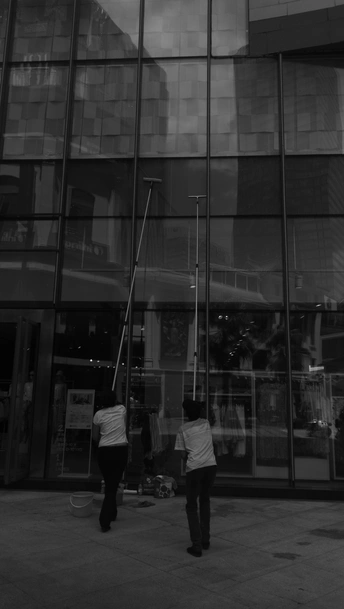 商场擦玻璃