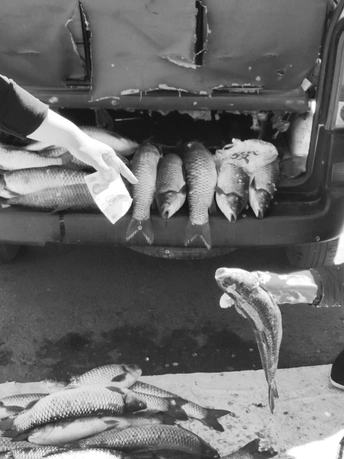 二道贩子从哈素海的渔民手里买来鱼,这些生物随着五菱车穿越土默特来到呼和浩特,家庭主妇在街头用钱来交易到它们,为做成美味取悦一家子人。其实,鱼,二道贩子,家庭主妇,包括作为看客的我,我们都是––大千世界里的生物而已。