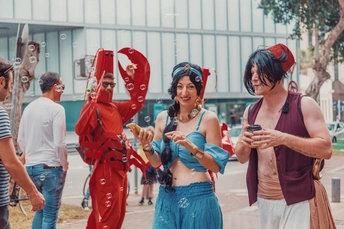 你会见到各种迪士尼里的角色,中东穆斯林土豪,牛油果甚至于使女的故事的使女,那个说We can don it的女工人。好吧还有人拿着玩具枪抢劫空无一人的彩票站。
