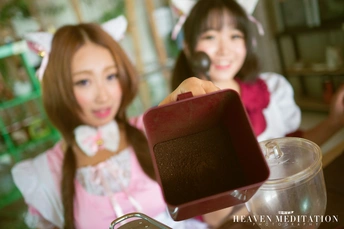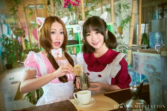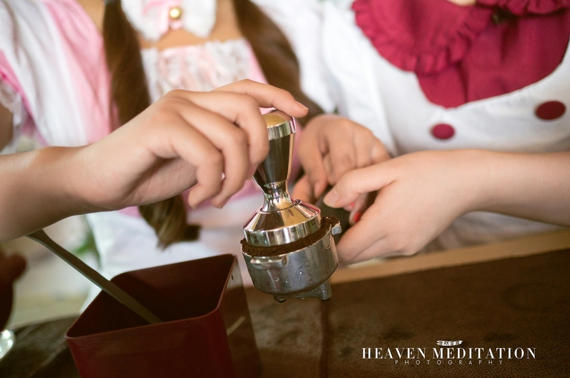 咖啡女仆喵 [2015.07.30] 摄影:蒼瞑雷舞 出镜:怪兽;小雨儿 煮咖啡前先给大家介绍一样东西~喵 怪兽豉油研究所最新产品~现在还买不到的~哦~~喵 怪兽研究所最新产品~你们猜猜是什么~喵 首先要把香浓的咖啡豆磨碎~喵 然后把咖啡粉放入把手里面压整齐~喵 还要用蒸汽打出奶泡~喵 我就随意画只龟~喵