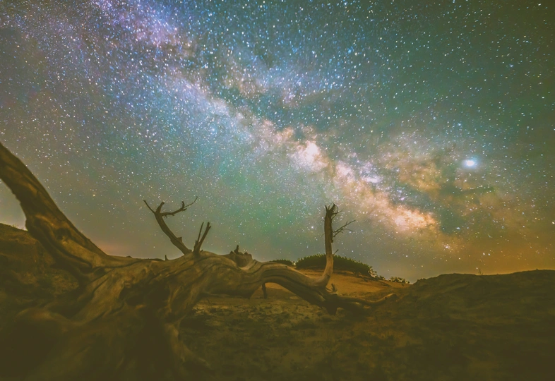 前不久,我们组织了一次超远的沙漠观星活动。虽然路途遥远,环境寒冷恶劣,没有任何人类的痕迹,甚至连gps坐标都没有。但是大家都很满足,因为的确这里的观星条件是少见的好,因为深处沙漠腹地,连地平线上都没有远处飘来的光污染。地处沙漠,没有厚云层,到夜里银河就挂在天空,肉眼可见的雄壮。可谓感人至深了,甚至忘记了陷车支配的恐惧。小伙伴激动地回来就发图了,我却迟迟没发,原因是翻车了…具体原因未知…片子几乎全废…郁闷至极…不过不发些片实在太可惜了,好在微单片子没有翻车,勉强发几张大家感受一下那时候的感动吧…