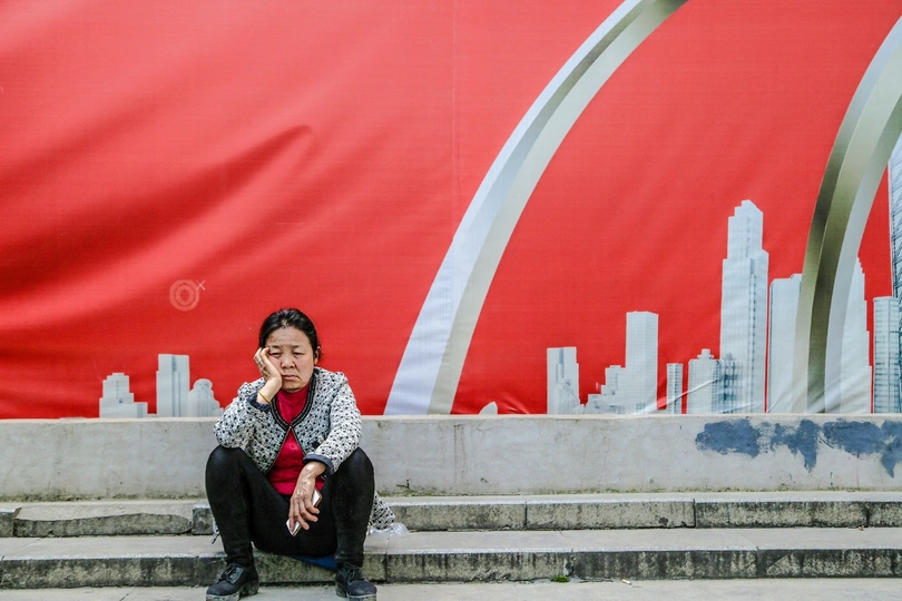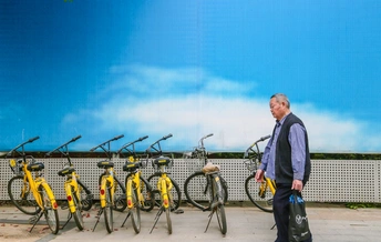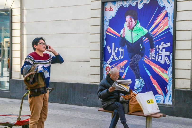 广告牌内容象征了时代,当广告牌与人物的结合似乎反应了社会