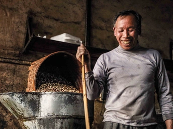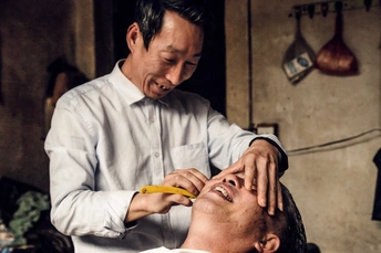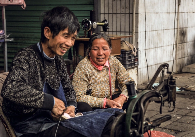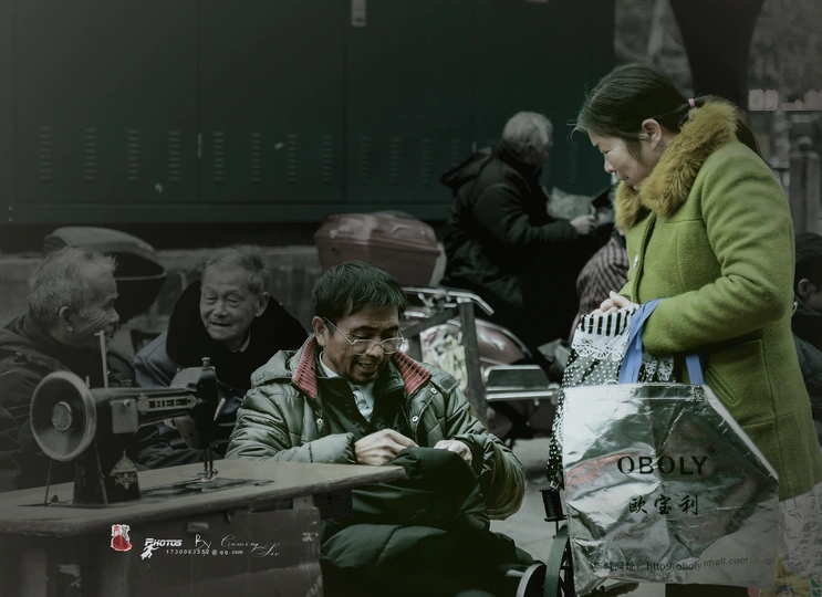 传统古法榨油的老师傅 手握剃刀理发的理发师 街头修鞋的鞋匠 与年已半百的老裁缝, 每一个人笑容都是那么纯粹