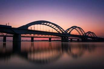 拍摄于松花江滨江铁路桥附近,当时太阳已经落下,但天边仍被照亮。为了使水面更加平滑,我给镜头加上了nd镜,拍出的照片也是令我满意。