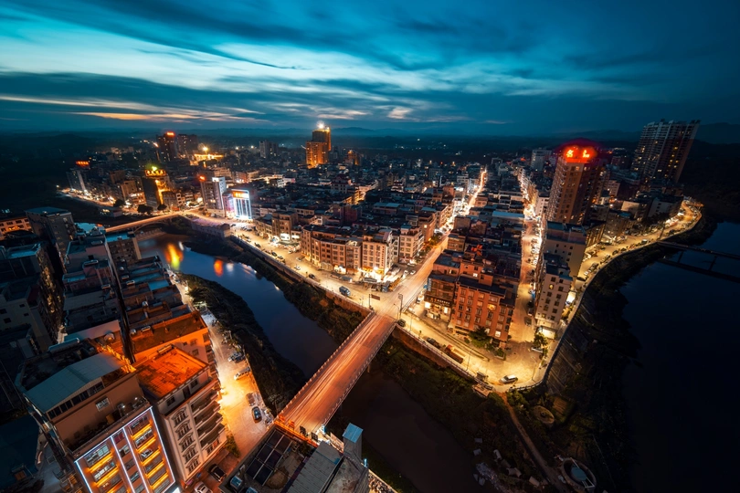 图片拍摄于广东省茂名市平定新城的一个入夜时分,很可惜,此时此刻的美景只有我一个人带着相机上到楼顶记录,这里只是一个普通的小镇,没有繁华的城市夜景和建筑,只有平凡的密集房屋以及万家灯火。