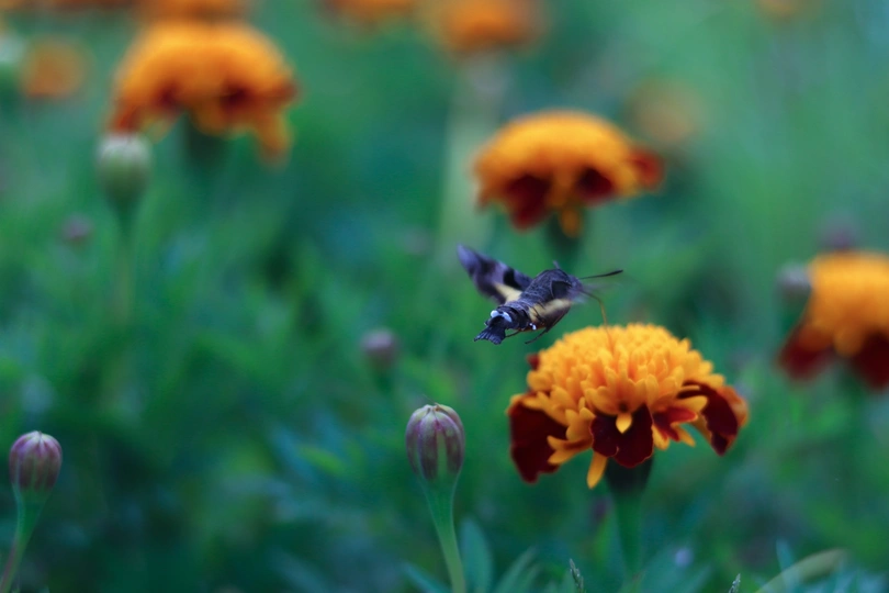 摄于北京朝阳公园 蜂鸟鹰蛾戏于花间