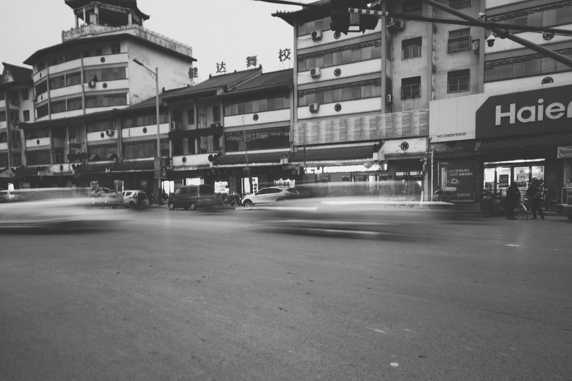 用慢速快门来打破原来平庸的街道,实现动静结合☺