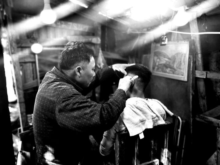 一间简陋的理发店,四面通风