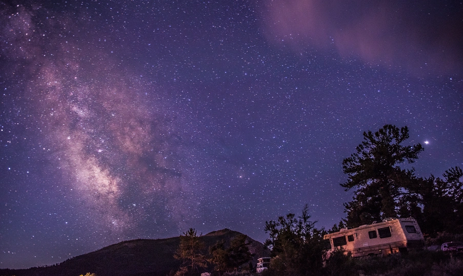 黄石公园猛犸露营地看到的银河,点亮了整个夜空