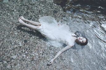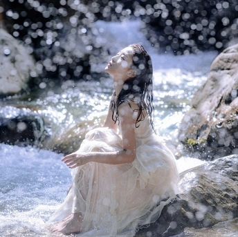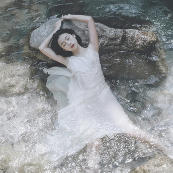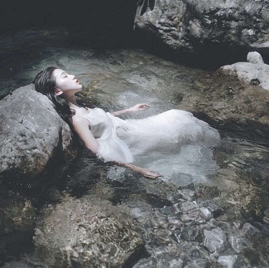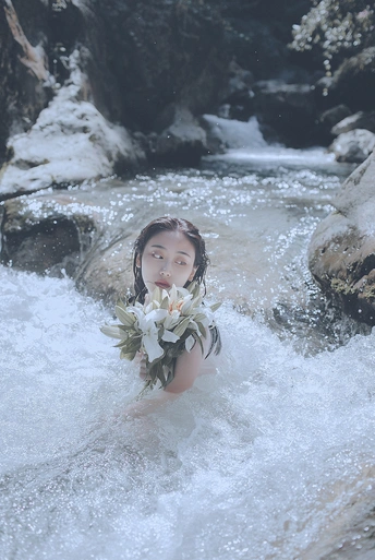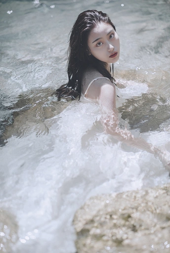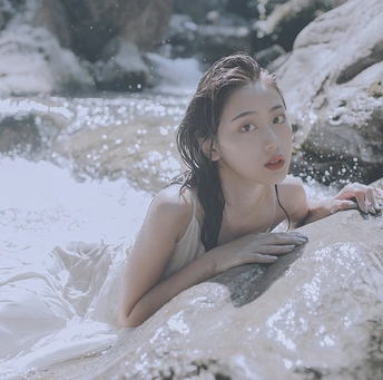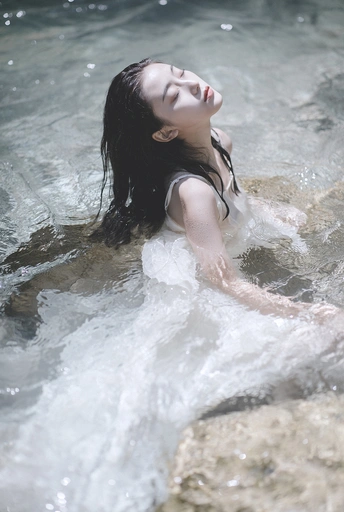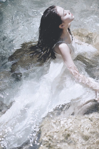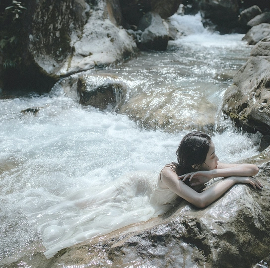 不会游泳的妹子与冰冷溪水的战斗 换了与往年不同的地方,水质里除了气泡都是透明的蓝色 weibo:@黑卡露