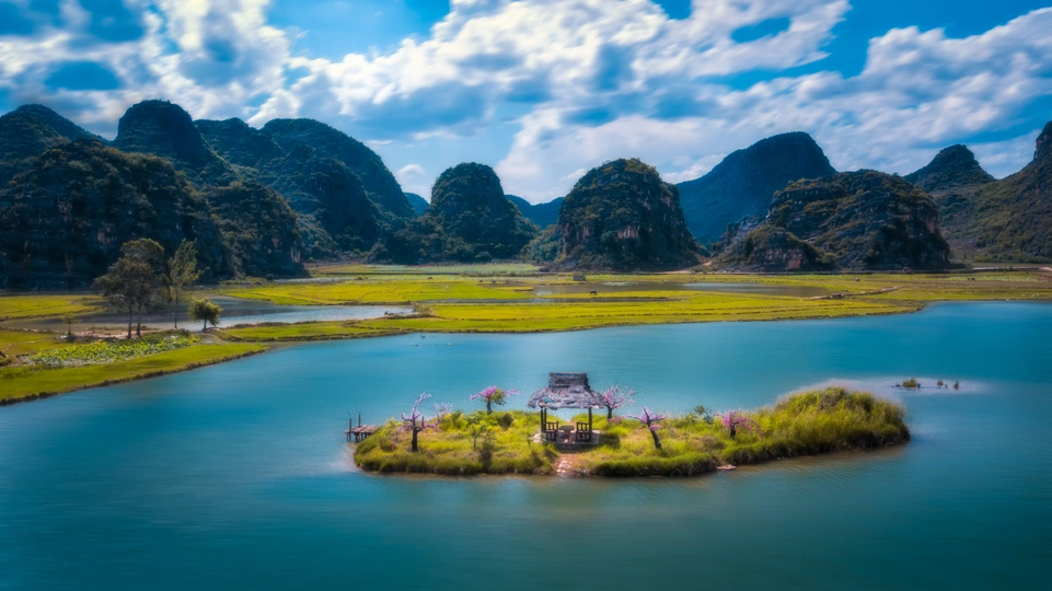 普者黑有点小阳朔的感觉,显得很秀气,却很有田园诗的味道。