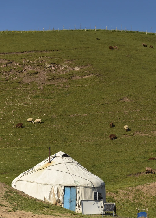 在那拉提的每一瞬间都无不让我想起加缪笔下的杰米拉,偌大一片草原,没有裂缝的寂静。你偶尔能听到一些回声,山谷里的响起的,草原上荡漾的。你勾着背全身松弛的站在草原之上,但你无法辨别这究竟是来自他者,还是来源于你的内心。 「有些地方,精神死了,是为了诞生一种恰成它之否定的真实。」 那拉提留在了我身后,那拉提的群山的忧伤的歌声,在碧空中盘旋却不高飞的大雕,每一只依偎在孩子怀中的小羊,每一头草地中央的汗马,羊群每一次突然而短促的移动,每一个鸟儿起飞的瞬间。我恍然这片草原背后的苦涩与幸福。
