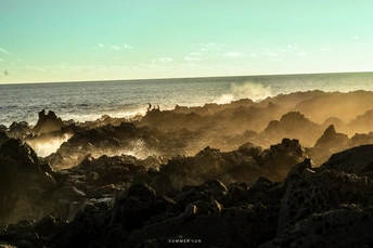 危险角日落☀️ 地址:Reunion 石头上都刻着逝去的人 这可能是危险角名字的证明吧🌊 Summer的海岛日常 Wechat787498214 更多精彩