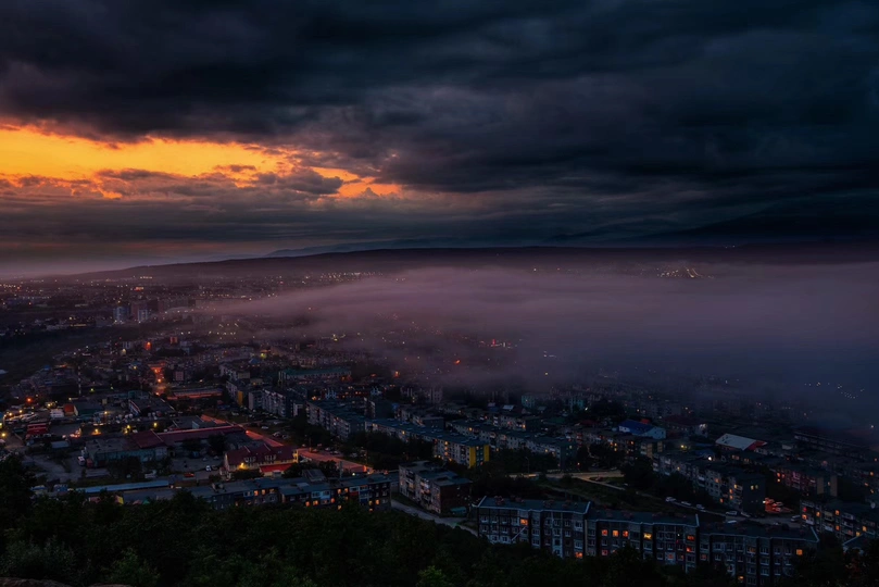 #火山国度#这次最惊喜的一张。站在这个被火山包围的海港城市顶端等待日落。结果天阳落山的夜幕时分,城市万家灯火亮起时候竟然被火山吹来的丝带版飘渺地雾气慢慢覆盖,给这座美丽的小城带来一种神秘且迷人的感觉。