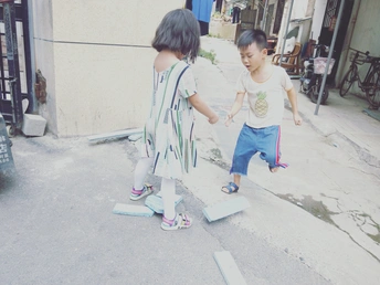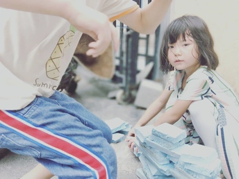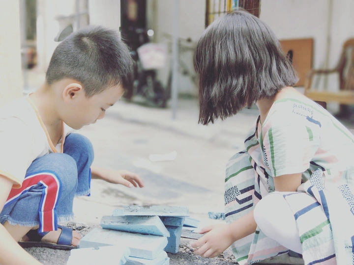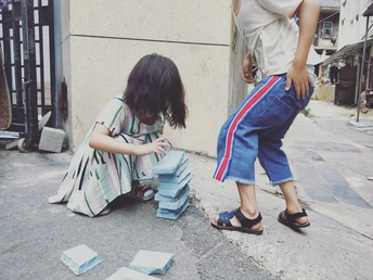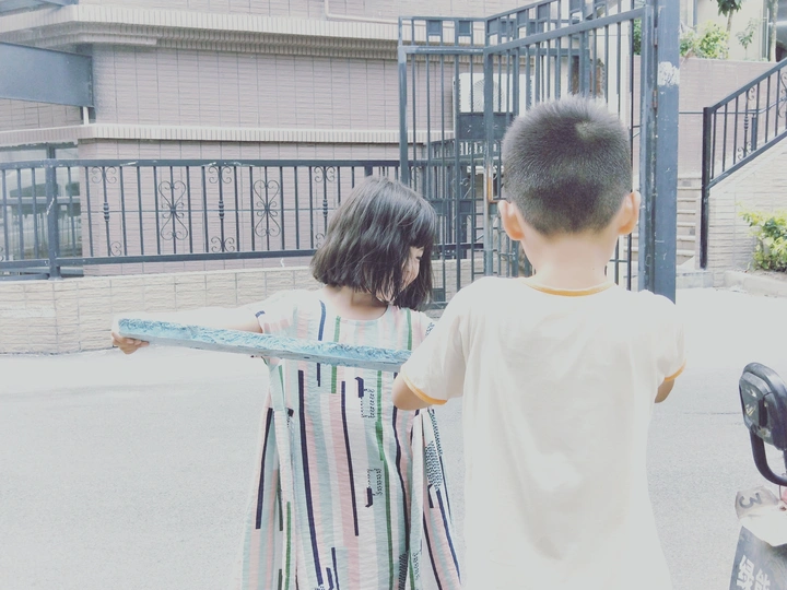 废弃的彩色泡沫条是我们最好的玩具! 嘿,嚯,哈 在小哥哥的天敌掌下,长长的彩条应声断裂! 快快快,码 起 来 我们有好多积木啦!