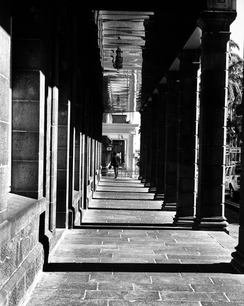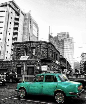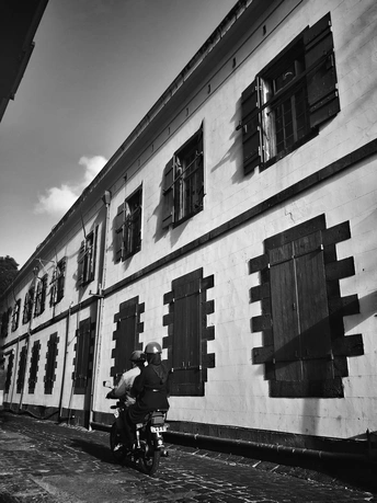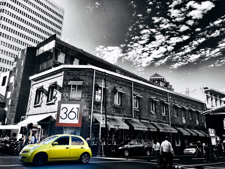 毛里求斯的路易港,石板路和石头墙,殖民色彩的建筑。