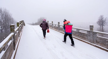 风雪中,夫妇踏雪回家!拍摄于云南省会泽县念湖!