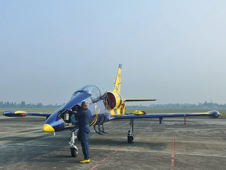 2019年9月28日,四川国际航展开幕前一天。 拉脱维亚的波罗的海蜜蜂表演队的队员正在进行着最后的准备-正式演出前最后一次预演。