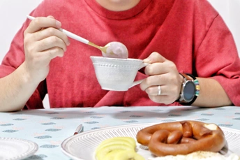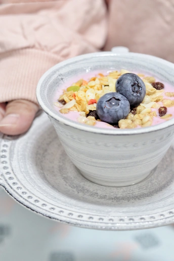 『小来哥&袁大雅的二人餐』 现在做早餐的原则是 把一切食材都弄热 端上桌最好都冒着热气儿 心里胃里都可舒糊了 那么 遇到一个问题 水果 酸奶 我要怎么让它 变的热服服类? 在线等… 早安 记得按时吃饭 🍵