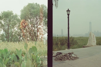 一种胶卷两种情绪 漏光与白天的江边