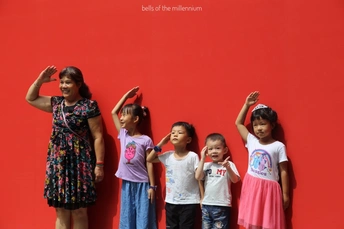 国庆期间,在广州各大景点有与国旗同框的装置,我在广州越秀公园拍下了许多孩子们开心的一幕