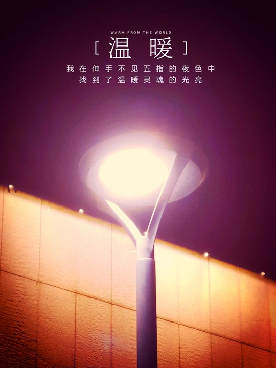 黑漆漆的夜晚 是那么的漫长、孤独和寒冷 每个人 孤单地走在自己的人生路上 突然之间 看到一盏温暖的散发着光的路灯 就会立马觉得这个世界 变得鲜活温暖起来 我在伸手不见五指的黑夜里 找到了温暖灵魂的光亮