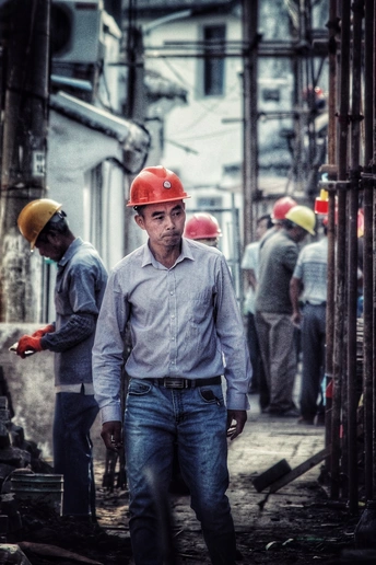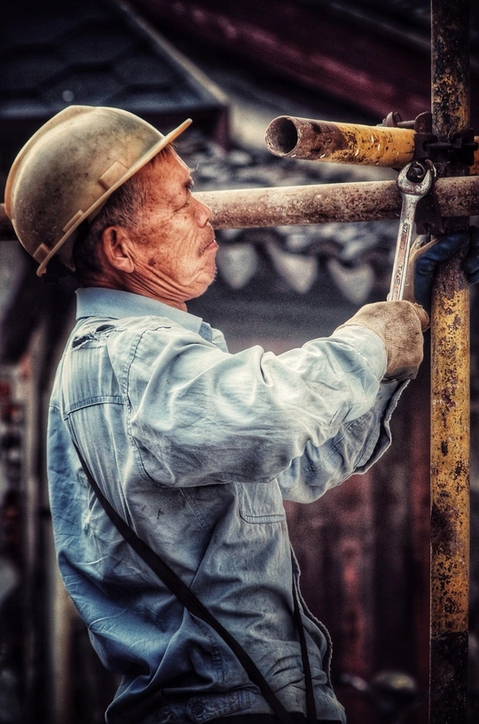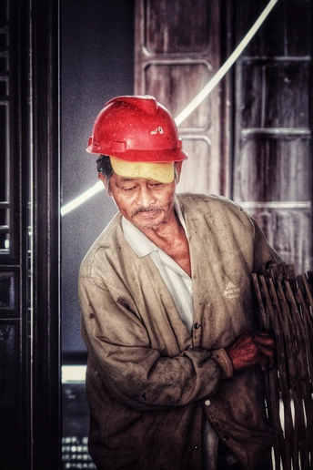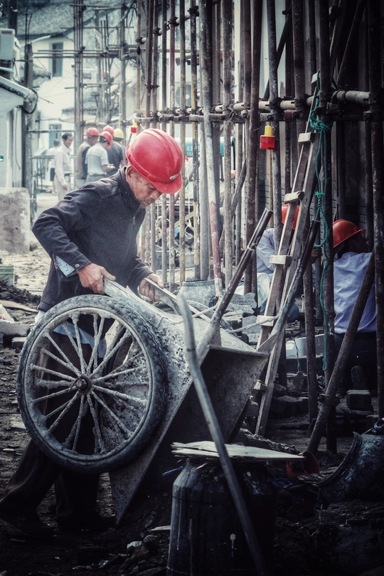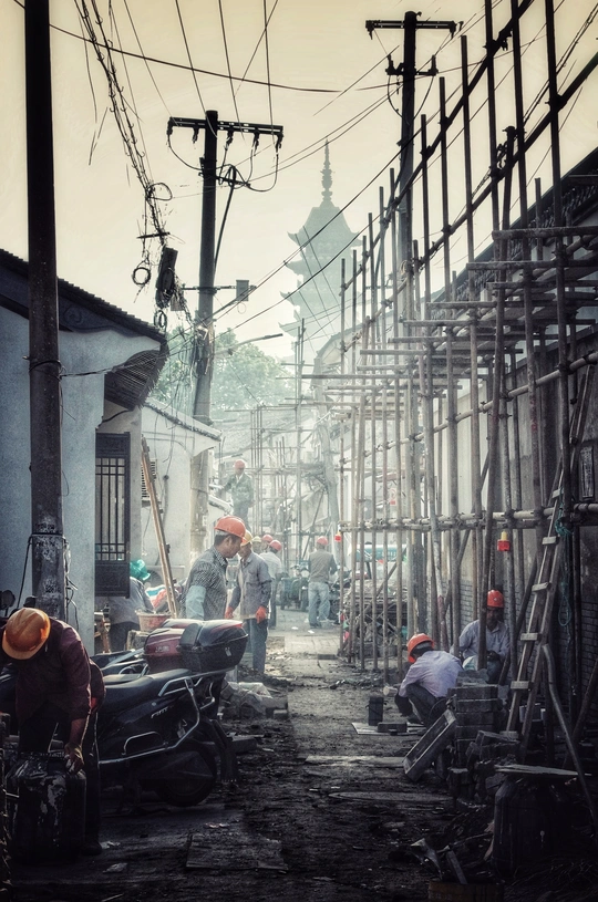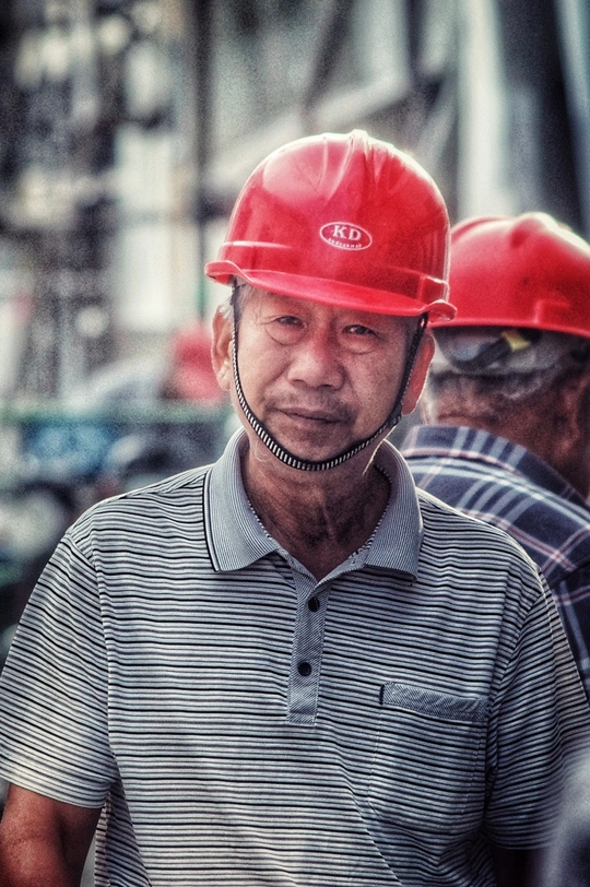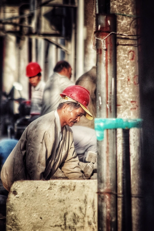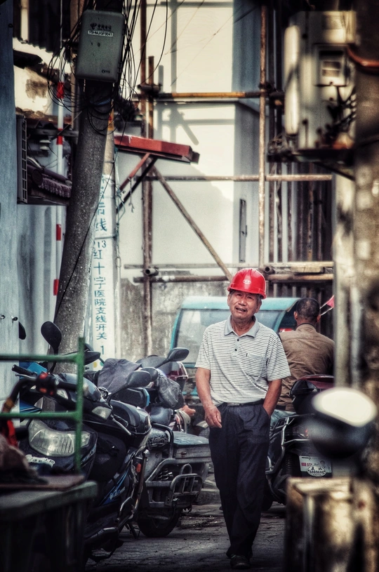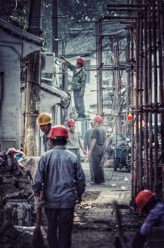 老街上一处古建工地,拍片时工人都在忙碌,对拍摄没多大的抵触,只是在说,安全帽戴戴好,安全绳系系好,勿要让人拍了去,有些汗颜,还是干扰了他们。以后从被拍者的角度多考虑,也是街拍中交流沟通的一课吧。
