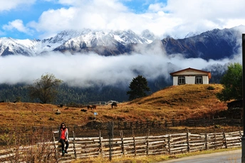 扎西岗村的秋天,云海雪山,一花一木一世界,爱与自由