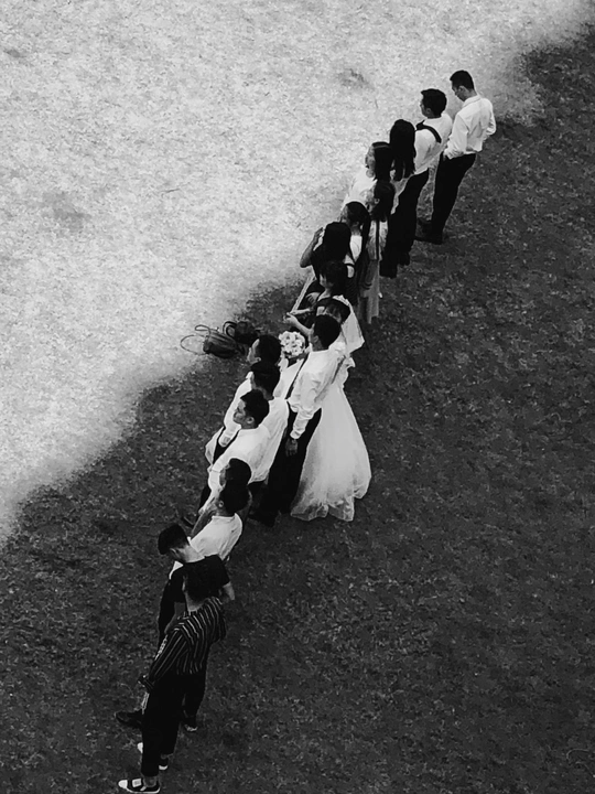 嘻嘻闹闹吵吵嚷嚷,向楼下望去,原来草坪上正弹奏着婚礼进行曲🎎祝福新人啦!