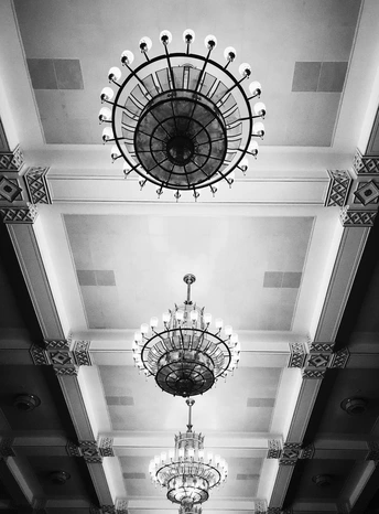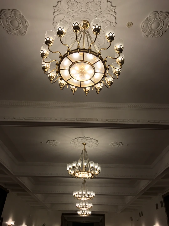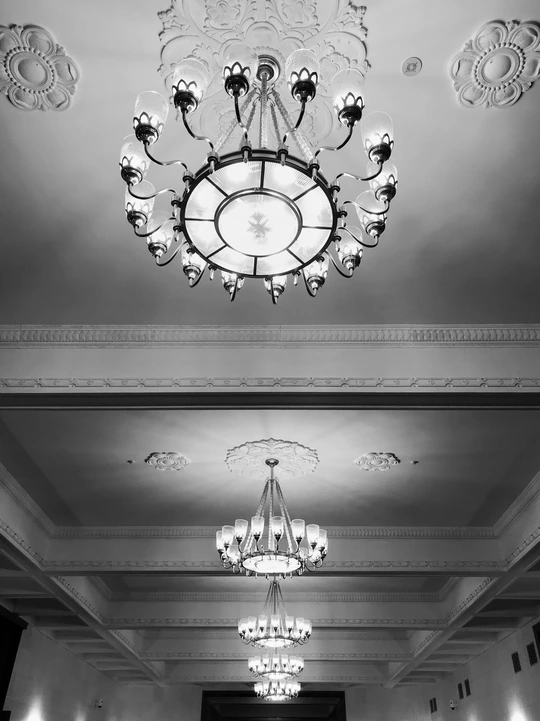 人民大会堂走廊里面的屋顶灯饰。觉得很好看。调了黑白和彩色的对照。