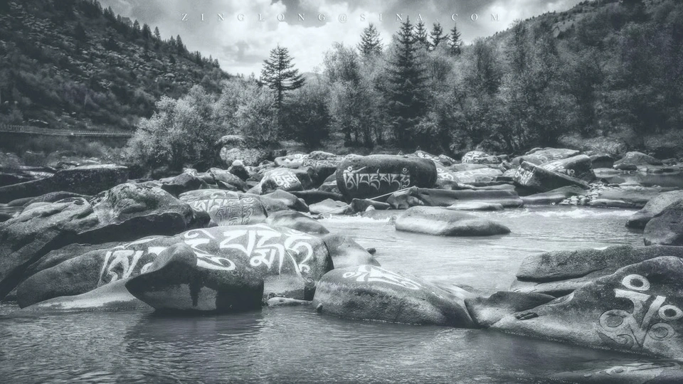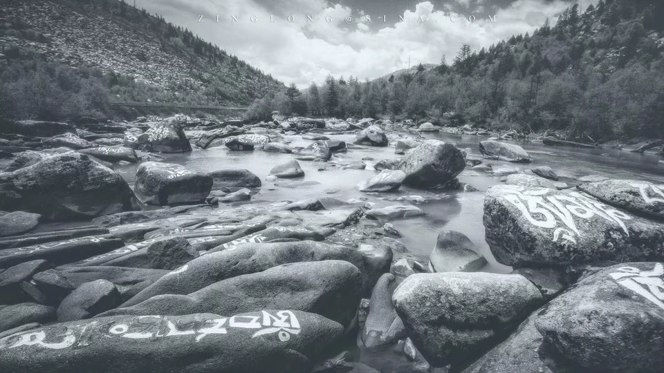 在途中这条河上,大大小小的石头上都刻满了经文,也是拍照的好地方!
