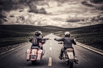 摩托车手之间,表达关系很好的一种行为