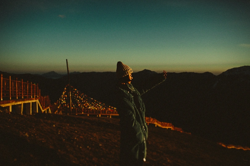 神木之丘 神木垒跟达瓦更扎的旅拍作业。这位年纪并不大的小姐姐,在几次工作接触中让我觉得做事有通常年轻人缺乏的责任感,比较踏实的感觉。所以我也愿意为她牵线自己的好朋友,让她有更多业务发展跟往来。 去往雅安方向的天气一如平日里带着昏黄的阴霾,让我连踩油门的激情都褪去了几许。 我相信是同行朋友带来的的运气,在快到达的时候蓝天破茧而出,经过电商节忙碌困倦的小姐姐也在这时候苏醒过来,对着眼前的景色啧啧称羡。虽然我看过大概比这丰满4倍的风景,但是我丝毫不想用冷水去搅乱这份年轻才具有的新鲜感,我不愿承认自己已经是老屁股的心境。 同行的兄弟跟我一起拍照拍了10年,自从走上了管理岗位,时间少了,却也没有耽误买最新款的相机。但跟我一起高海拔冬季旅拍的艰辛过程中,我甚至在他眼里看到了绝望,原来拍照除了时间,金钱的投入,在而立之年的时候你会突然发现身体机能的负荷还需要跟意志绑定。一时不适应就生了病,照顾不周兄弟。 在达瓦更扎经历了之前提及过的不愉快插曲。我从来不是一个强势的人,如果是我自己遇到被忽略的状况可能更容易被接受些,但事情发生在自己朋友身上就是不行,加之缺氧的困倦感