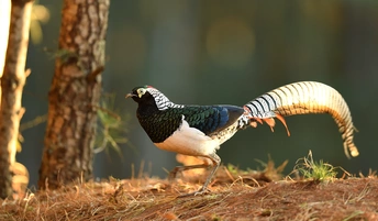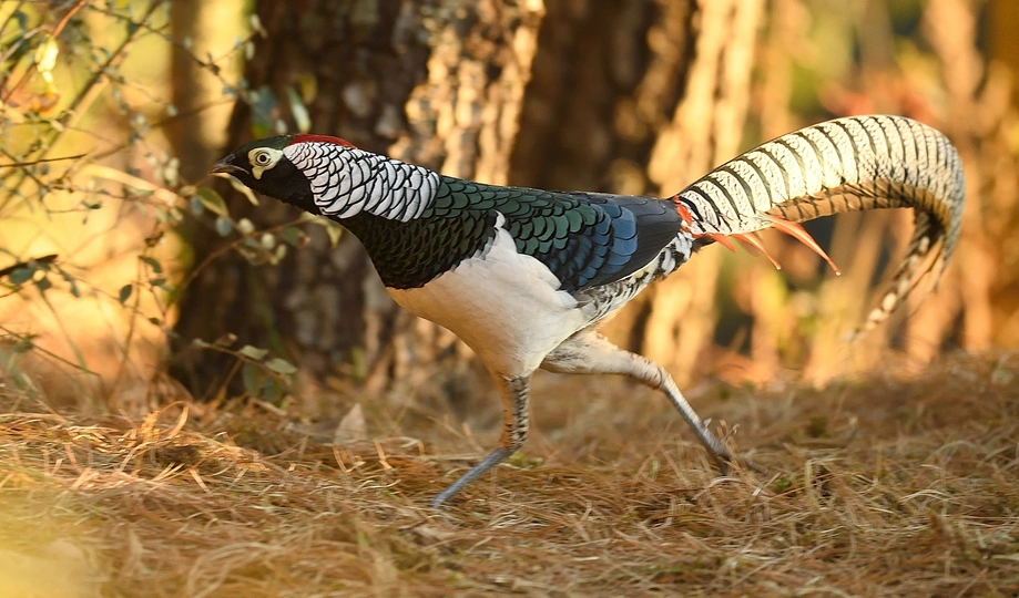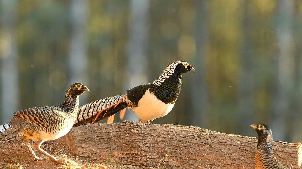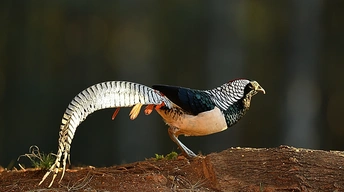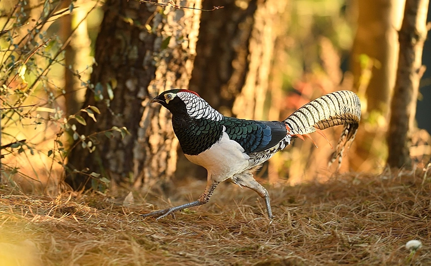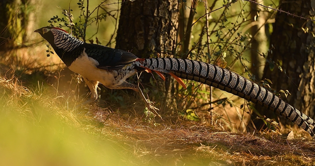 会泽念湖滚柴坡,是拍摄白腹锦鸡的一个绝佳点,没有约定的周末,一个长时间孤寂的守候。林中悄悄出来,拖着光亮似锦的长尾,一身华丽的羽毛 ,还有那永远都不会被其华丽绽放的羽毛所遮挡的眼睛,轻盈袅娜地在林缘灌丛草坡,雄姿漫步、热恋耳语 、高声啼叫、求偶炫耀,动静皆画,与高贵、濒危的白腹锦鸡偶遇,会让你狂野、亢奋,更加充满对自然的摩拜。