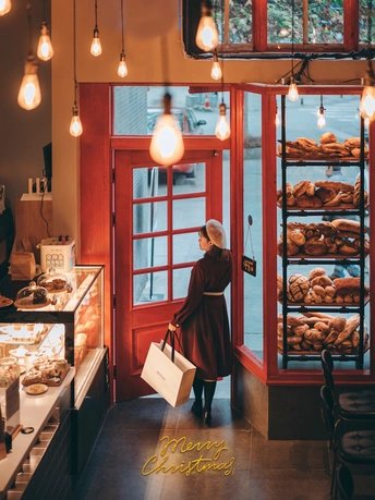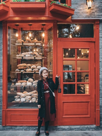在成都也能找到这种国外感觉的店铺,这个面包店,很合适拍圣诞节主题。