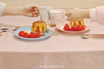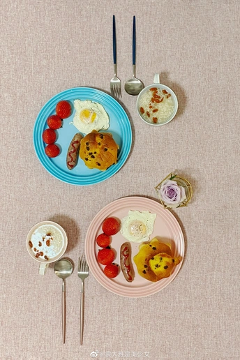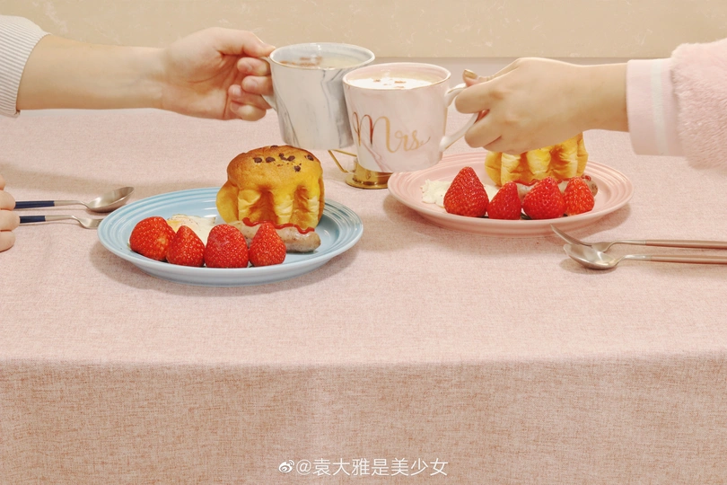 「小来哥&袁大雅的二人餐」 嗨 我们俩回来了 新年第一餐 🍲 从兔兔投喂的墨西哥红豆巧克力面包开始 好吃的面包配好喝的醪糟酒酿 嗯 这一年一定会是中西合璧的一年 早安 记得按时吃饭 🥳