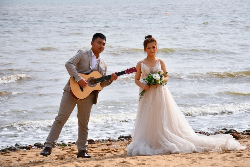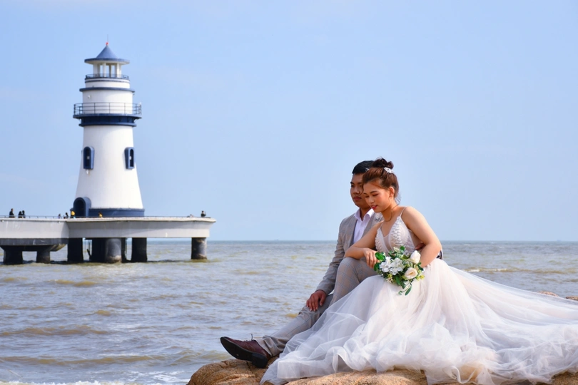 拍照没模特,有拍婚纱的,就偷拍了几组😁😁