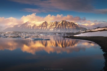 静谧的冰河湖 宁静的倒影 眼前的一切仿佛能净化身心所有的杂念 山水之间的凝望 凝望这冰河湖上一颗颗闪烁着钻石般光芒的冰石 感叹大自然打造的神奇宝藏