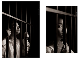 出镜:边 铁门啊铁窗啊铁锁链 手扶着铁窗望外边 外边的生活是多么美好啊 何日重返我的家园