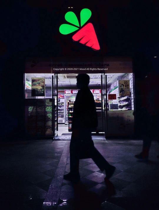 夜里行走的胡萝卜看上去是如此美味,与匆匆而去的人形成趣味瞬间,灵感再次冲出黑夜,带来生机