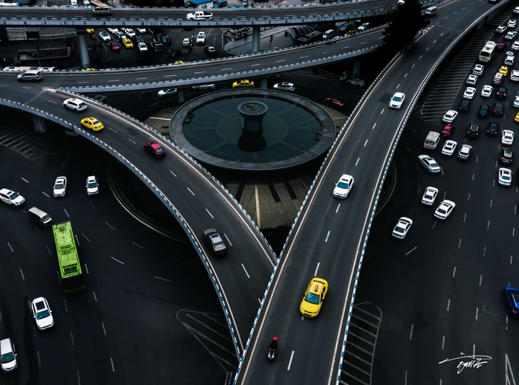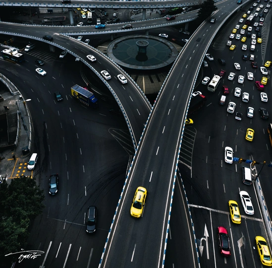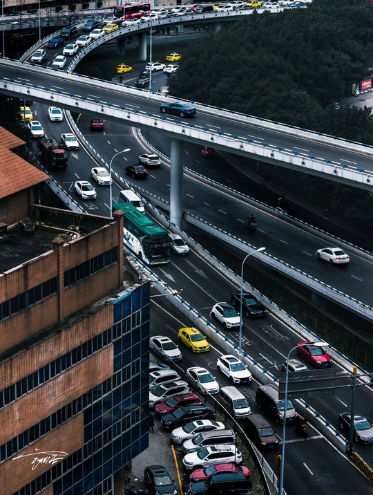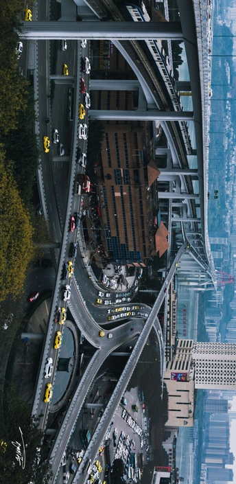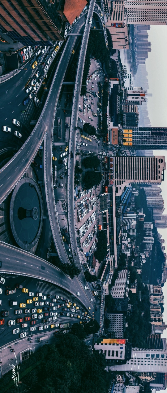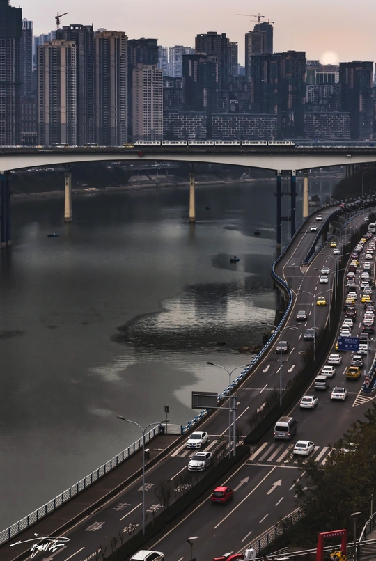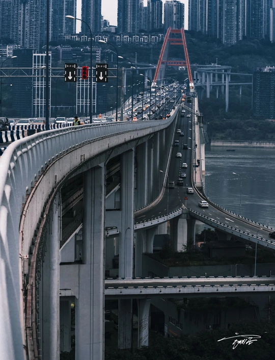 因为山地的关系,重庆的桥都比较高,每个桥头都有着复杂的交通系统