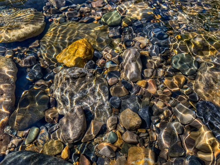 湖面平静的像一面明镜,阳光一照,跳动起无数耀眼的光斑。
