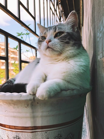 猫猫会到各种奇奇怪怪的地方睡觉 比如脏脏的花盆里[鄙视]
